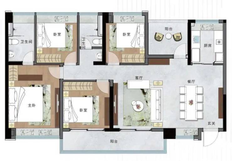 ②98㎡3+1室2厅2卫(南朝向)『多变空间』3+1户型设计,超高空间扩容和多变性,卧室全飘窗设计,悦享舒适人居 『布局合理』户型方正适用,动静分区互不干扰 『干湿分离』主卧套房设计,干湿分离,洁净分区