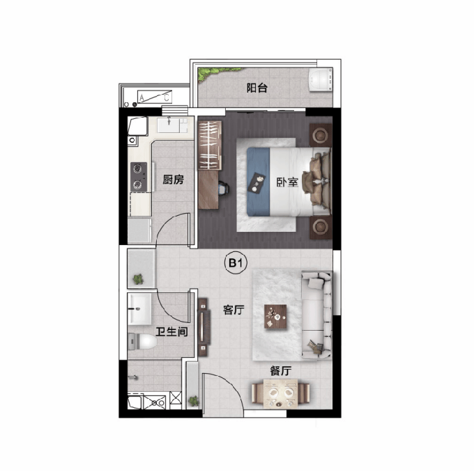 2.轻奢平层公寓 |约 59㎡一室二厅一卫