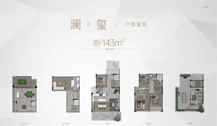 全盘只有两种户型:143㎡四房平层(均价4万多)和143㎡叠墅(1200-1400w)。