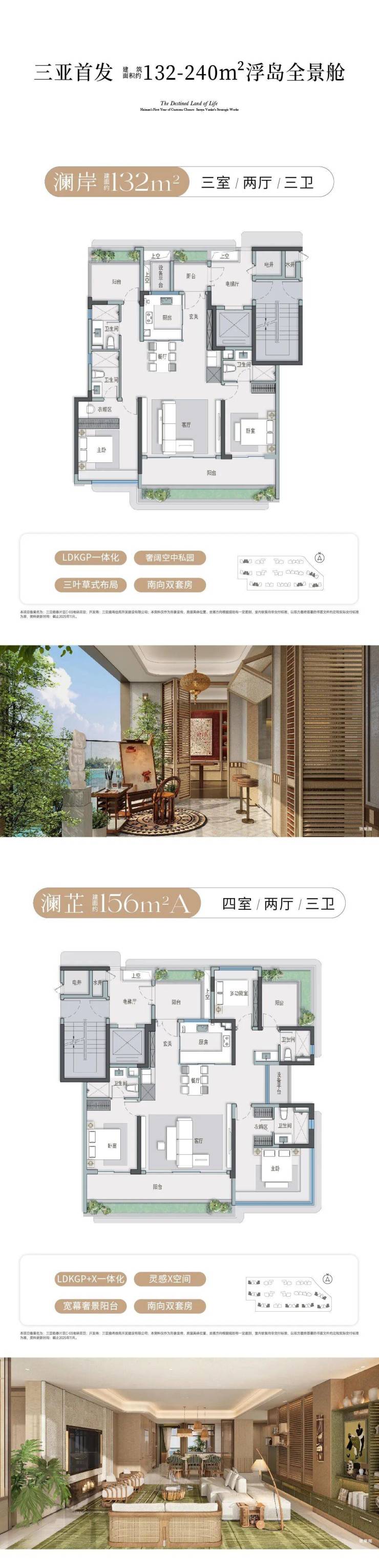 项目是三亚首发类四代宅的创新户型,在产品设计有不少亮点,比如三阳台设计,入户庭院花园打造;再比如全景舱设计,做到U型三面采光,比传统L型多一个景观面。