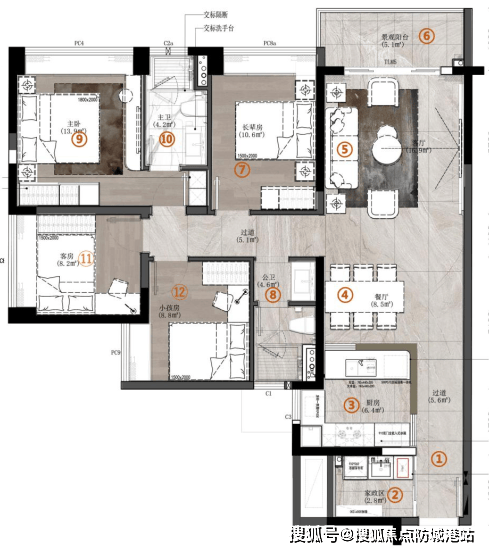 项目坚守改善定位,主打128-143㎡全周期四房户型,涵盖128㎡、129㎡、131㎡、139㎡、140㎡、143㎡等多个户型,共572户,无小户型掺杂,兼顾圈层纯粹性与空间实用性,精准适配多人口改善家庭居住需求[1][4]。户型设计以“空间奢适化、采光最大化”为核心,全明布局,充分保障室内采光与通风,贴合改善家庭居住质感[4]。