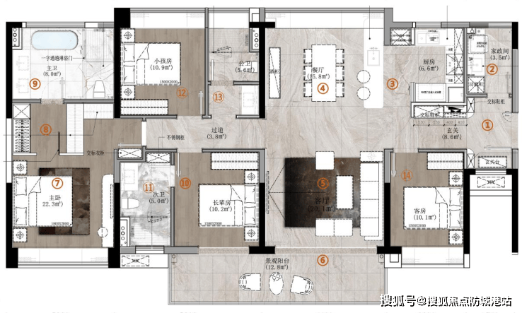 户型定价区间合理,总价540万起,其中129㎡四房售价540-800万元/套,139㎡四房售价738-838万元/套,143㎡四房售价866-880万元/套,适配不同预算的改善家庭[1]。所有户型均为四室两厅布局,空间开阔,分区清晰,兼顾家族居住与日常社交需求,主卧搭配舒适卫浴空间,凸显尊崇感,同时预留灵动空间,可根据家庭需求改造,实现“一步到位”的居住体验[1][4]。