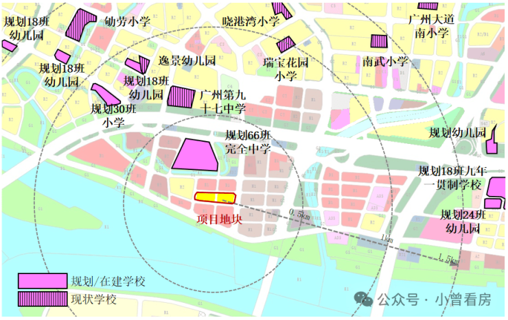 1千米范围内有广州第九十七中学,1.5千米范围内有南武小学等,距离地块