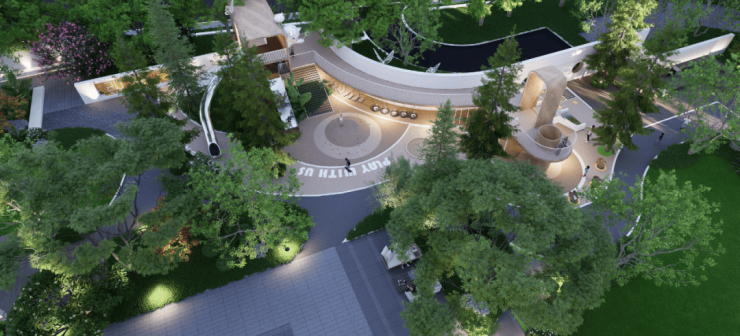 大门处保留百年榕树,打造休闲空间“榕悦广场”,休闲社交超自在!