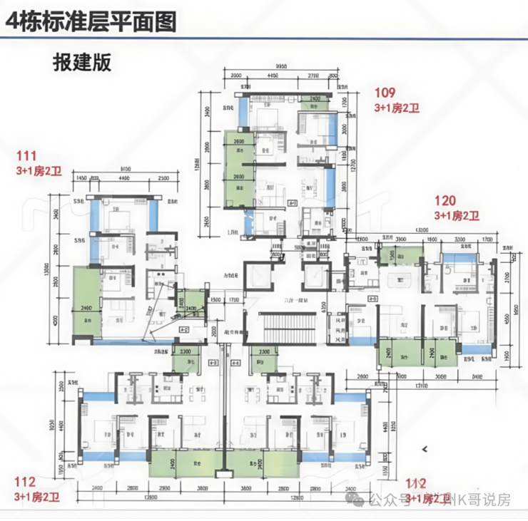 项目主推92-141㎡三至五房,全南向设计,主打高使用率,最高可以达到118%,关键词:110%+使用率、2梯3-5户、全南向。