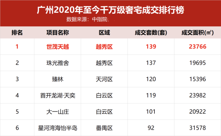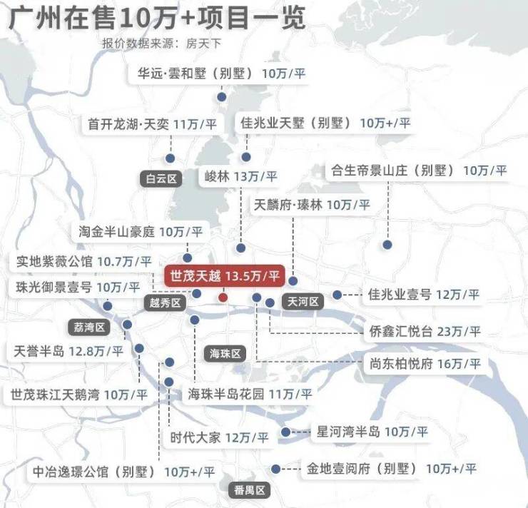 如天河的尚东柏悦府、海珠的天誉半岛花园等热门奢宅,由于面积过大,总价分分钟上到5000万。