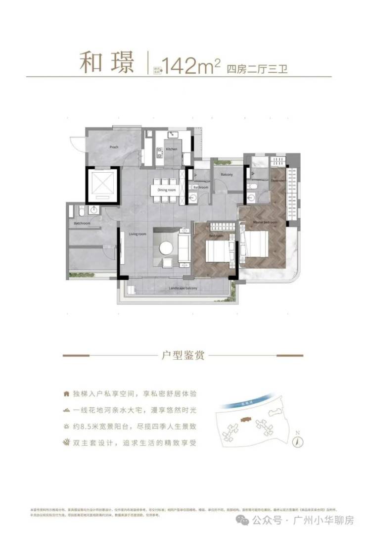 [142㎡四房两卫] 一线花地河景观,中轴王座