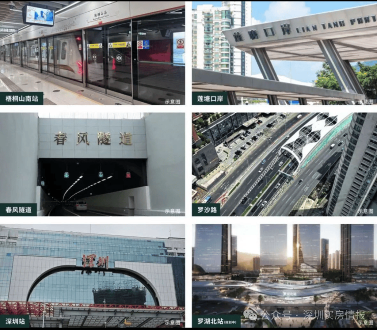 这一独特地理位置赋予项目两大核心优势:一是生态资源丰富,背靠梧桐山麓,周边环绕仙湖植物园等67个公园,3km范围内负氧离子浓度全市前列,为居民提供天然氧吧般的居住环境;二是跨境便利性突出,通过莲塘口岸可快速通达香港,口岸开通后客流量持续攀升,2024年出入境人员突破2000万人次,是深港"东进东出"战略的重要枢纽。项目所在区域被官方定位为"深港深度融合发展的试验区、先行区",未来随着深港合作深化,这一区位价值将进一步凸显。
