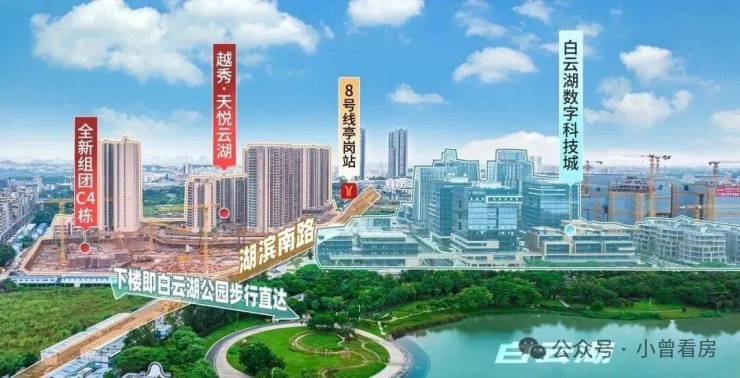 配套优势:临近8号线地铁站+对口金广附9年一贯制顶级公办教育+临近白云湖西湖公园;