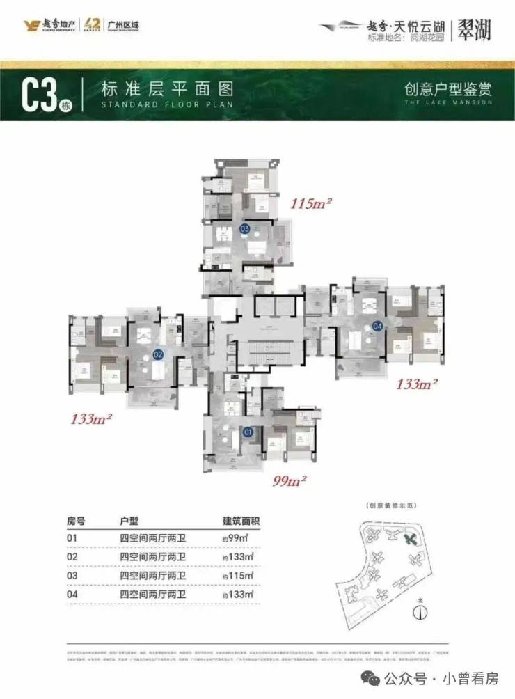三期加推C3号楼,户型为99㎡/115㎡/133㎡