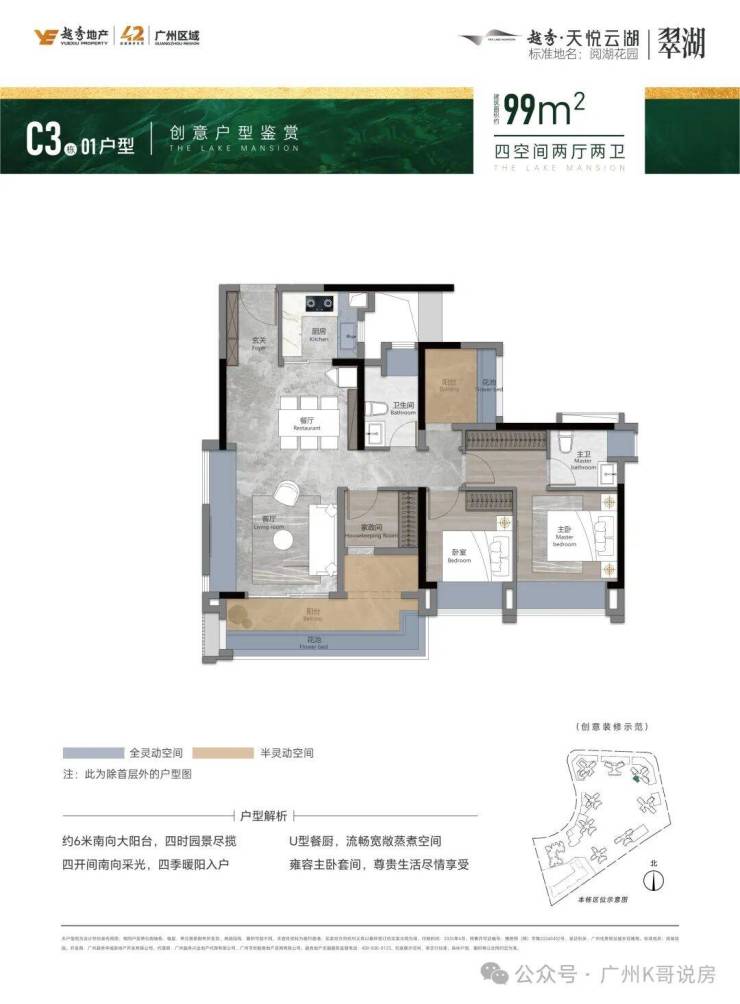 南向双瞰景阳台,尽揽四时园境,U型明厨、瞰景餐厅,优雅美味时光