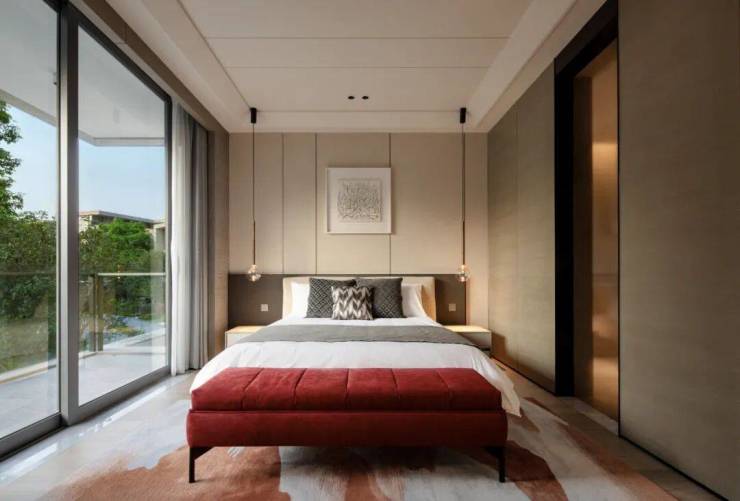 精研意大利进口家私,主卧套房以独立卫浴、衣帽间及半山露台定义奢适尺度。