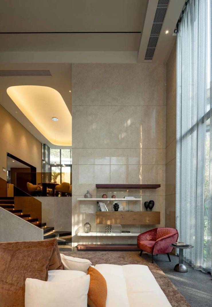 以自然主义为笔触,6.6米挑高艺术客厅串联山色,430㎡私家庭院消弭人居与自然的界限。