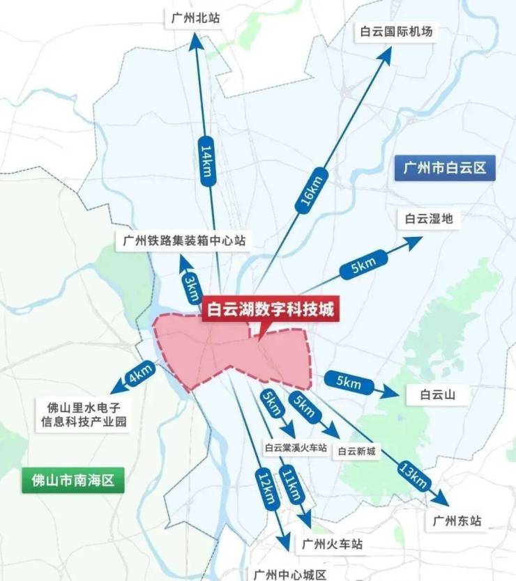 16公里范围内,即是白云新城、白云山、广州火车站、广州中心城区、白云国际机场、广州北站等等,堪称湾区中心,虹吸效应一触即发。
