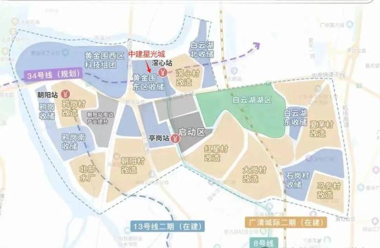 中建星光城位于白云区西部的白云湖板块,距离已开通8号线滘心站约400米!