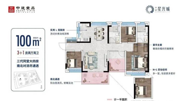 建面约100㎡丨会呼吸的大4房