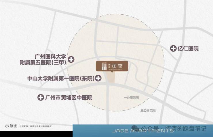 · 距中山大学附属第一医院约500米,距广州医科大学附属第五医院约1.2千米