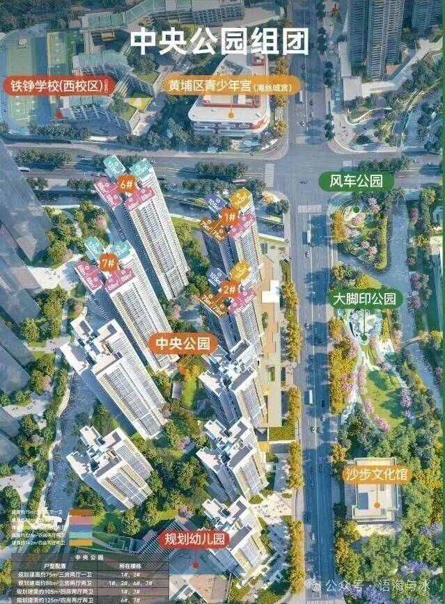5、产品:在售的中央公园组团位于整个项目C位,远离道路,东侧有4万方的公园,再往东就是融德里滨水古街,组团北侧就是广铁一中学校与青少年宫,可以实现目送式教育,中央公园组团近期还加推了8栋楼王,户型为86-114平三四房,