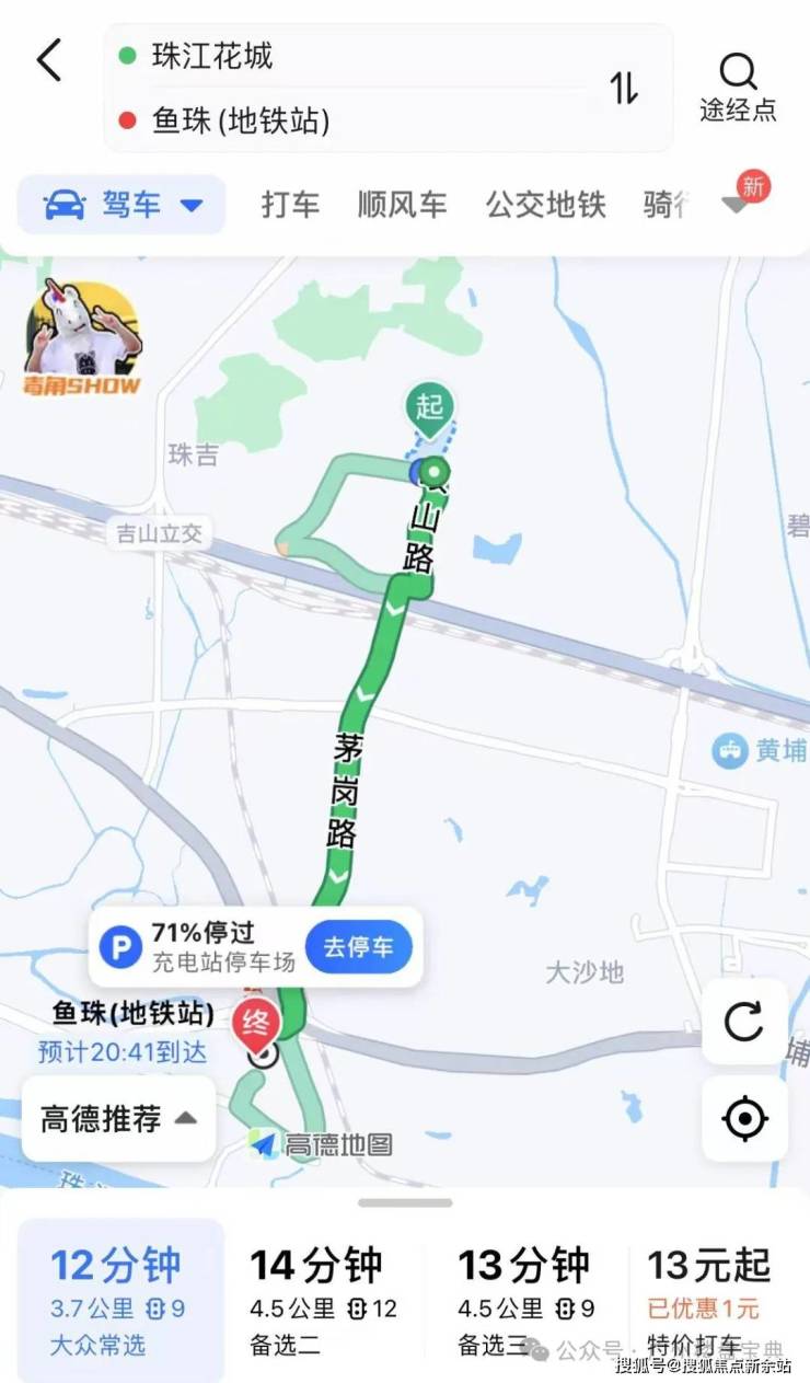 自驾或地铁通勤鱼珠:小区出来走岐山路转茅岗路即可到达鱼珠,全程3.7公里耗时12分钟,打车13块,公交6站耗时44分钟。