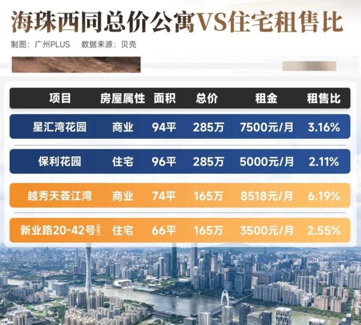 越秀天荟江湾就更牛了,165万的公寓租售比能干到6.19%,是周边同价位住宅的2倍多。