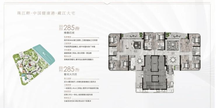 ● 户型:建面约233-285㎡四至五房,极致3.4-3.6m层高,14-40层高层、超高层