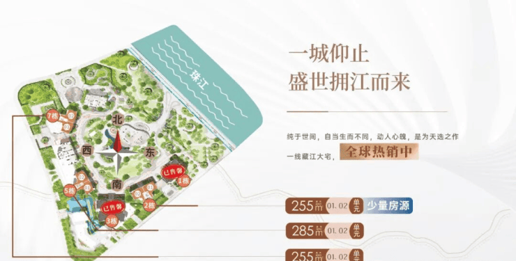 项目处于三江环抱地,家楼下纵享无界亲江,揽广州市区唯一2.4km至美江岸线。社区举步可达江岸休闲公园、滨江文化公园、广钢中央公园,一江三园的绿养生活体验。