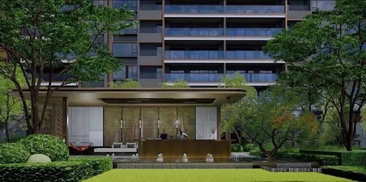 铝板+玻璃幕墙外立面,配中央空调、全屋净水、智能马桶等高定装标;围合式岭南园林含全龄活动空间。