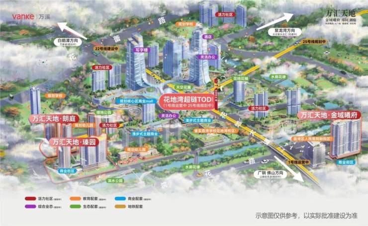 天空花麓连接双地铁交汇,无风雨通达万汇天地娱乐、居住、商业、写字楼、景观公园、教育医疗等多元空间,体验全新都市立体生活
