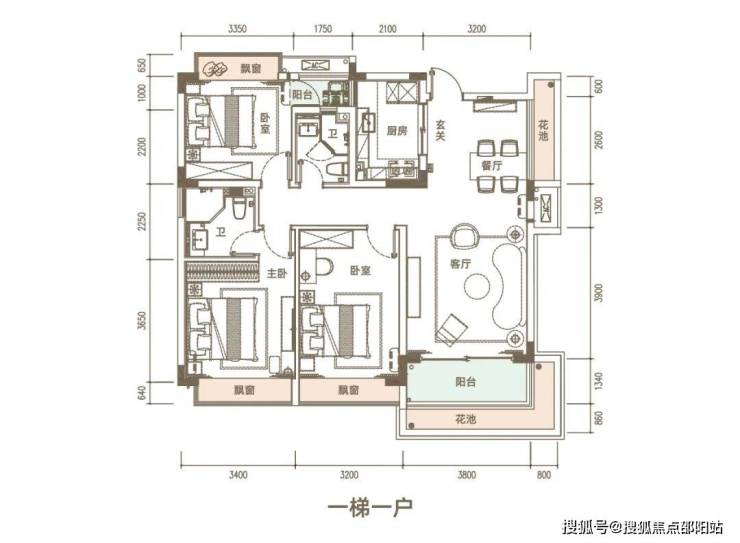 平墅:B2户型三房两厅两卫:建筑面积约110㎡
