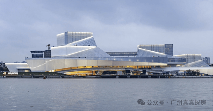 约800米极宽江面,更可瞰约2公里滨江绿地公园带和CBD繁华天际线,以珠江之光,点亮一座城市的千年荣光,广东省重点文化工程“三馆合一”项目全面封顶,目标打造成为“广东艺术的新客厅”。