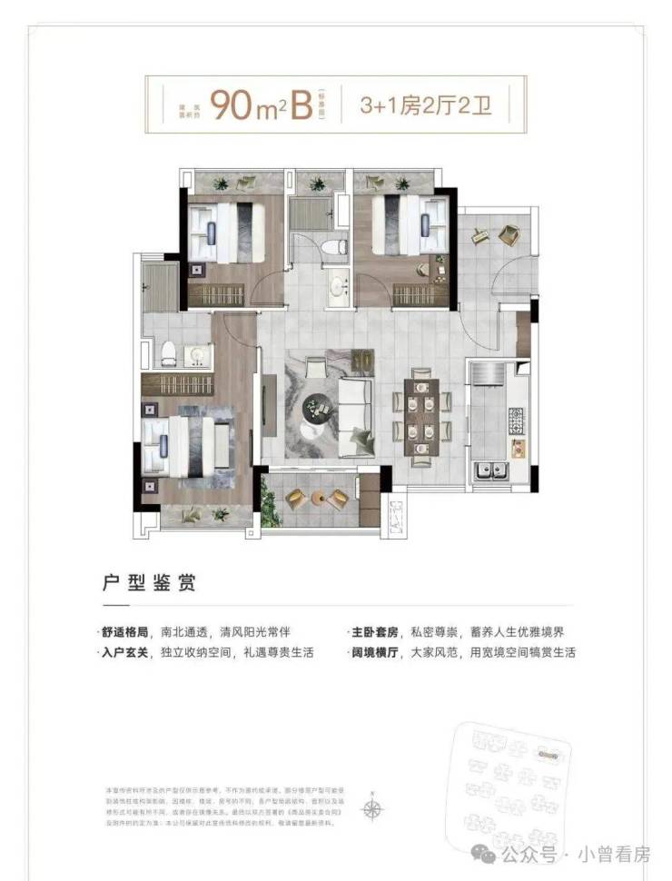 【90m²B 3+1房2厅2卫】