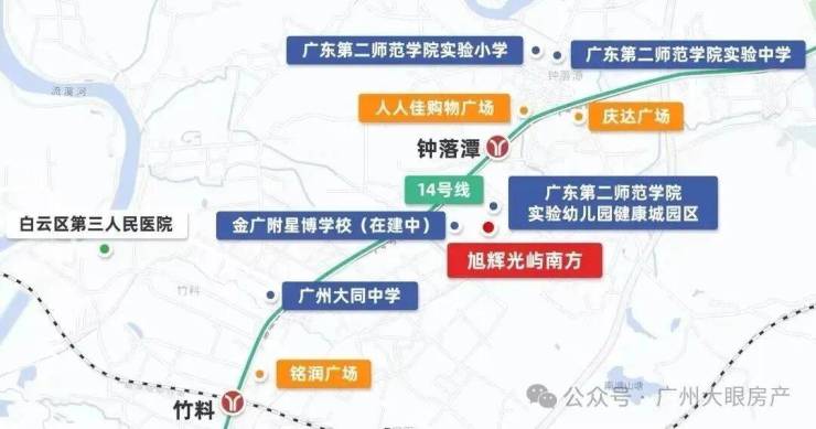 项目位于地铁14号线钟落潭站旁,距离大概1000米,5站到嘉禾望岗,换乘2、3号线可直通白云新城和畅达广州全城;