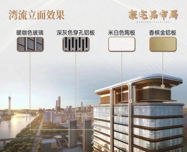 ● 流体幕墙艺术:湾流曲线玻璃幕墙+9.9米塔冠,融合铝板线条,以超30%阳台率创新设计,定义珠江封面颜值。