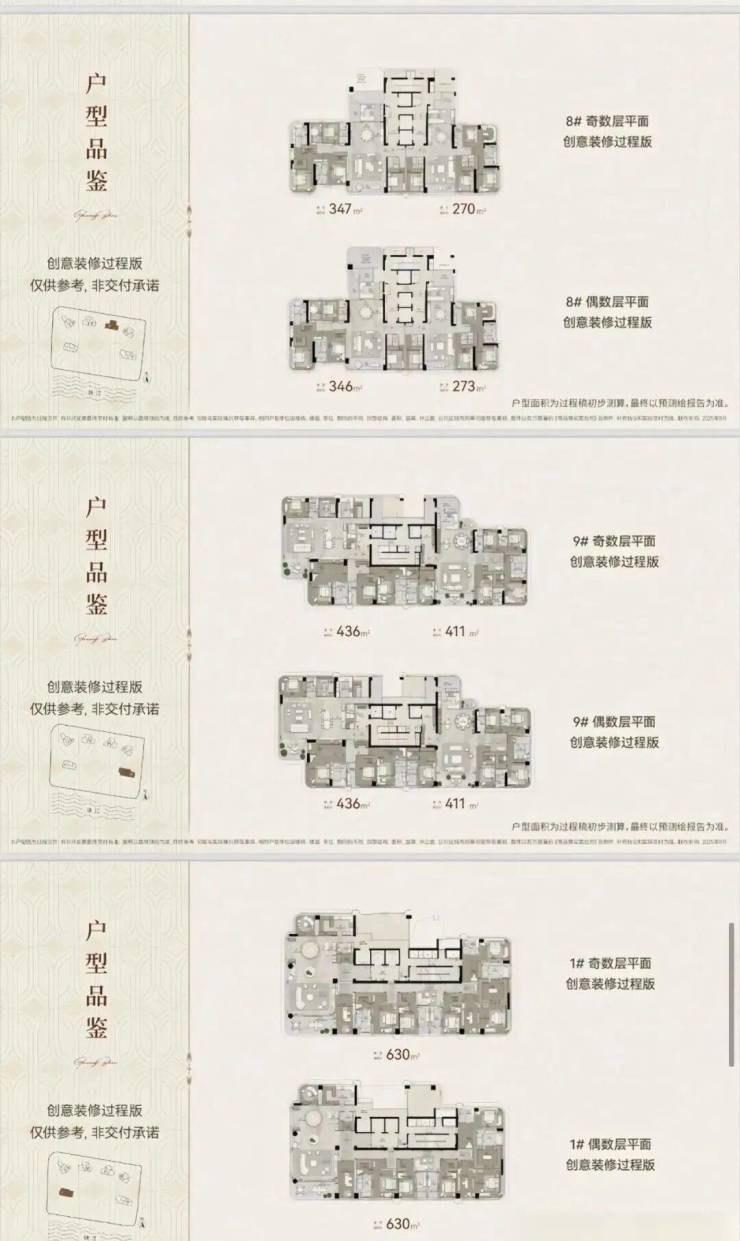● 首开户型解码:3栋50层(205/225/228㎡)、6&8栋48层(277/348㎡)、5栋50层(241㎡)、9栋37层(408/435㎡)、1栋楼王35层(630㎡),户户瞰江,致敬巅峰人物。
