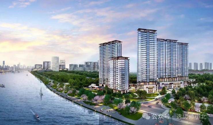 而且项目所在位置是三江交汇处,江面开阔,距离珠江最近的地方只有90米,整个项目坐拥700米长江岸线,还专门在江边打造了约1.8万m的滨江公园
