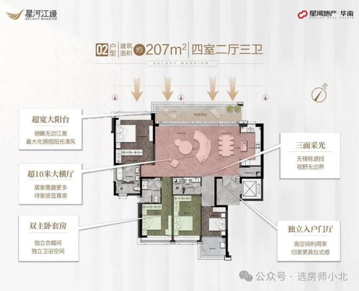 产品本身,更是亮点十足:LOW-E玻璃、LDKB一体化、超宽大阳台、双主卧套间、高得房率、三卫浴空间等,均是项目产品力的高调炫技。