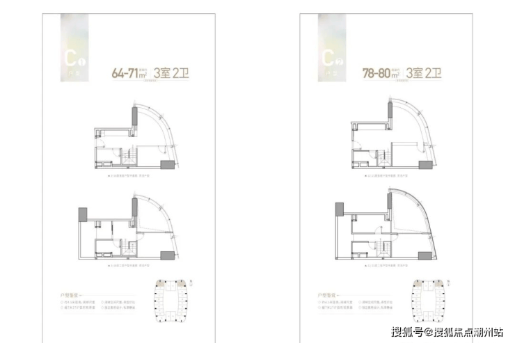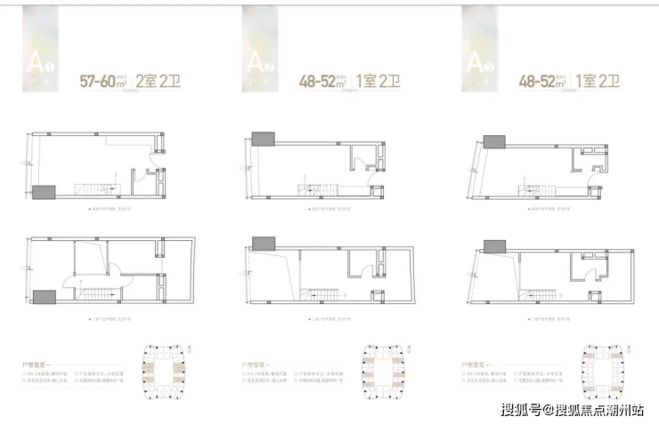 产品类型:48-115㎡复式(1-5房)C塔的loft产品6梯24户;107-350m²平层