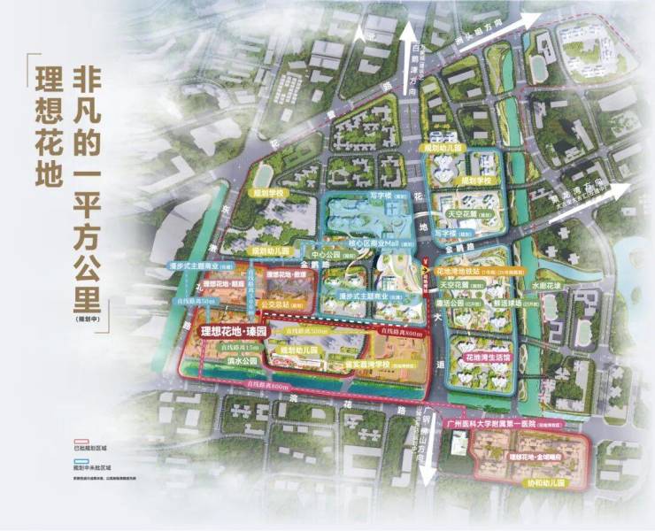 理想花地约18万㎡城市级购物中心、约7.5万方社区及街区商业、约2.5万方精品商业中心(规划中)