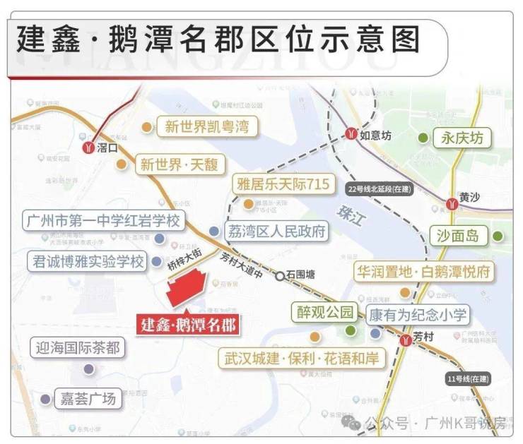 荔湾桥梓大街南侧地块位于白鹅潭板块,临近荔湾区府和芳村大道中,与在建11号线石围塘站只有800多米,去天河、海珠都会比较方便。