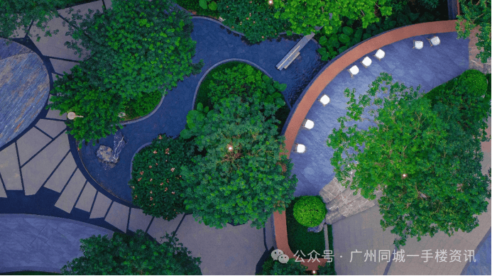 天河源筑不同,它选择用一个节点集中拆解,就如下图,项目凭借地势,打造了一座双层立体花园,手法大胆而新颖。