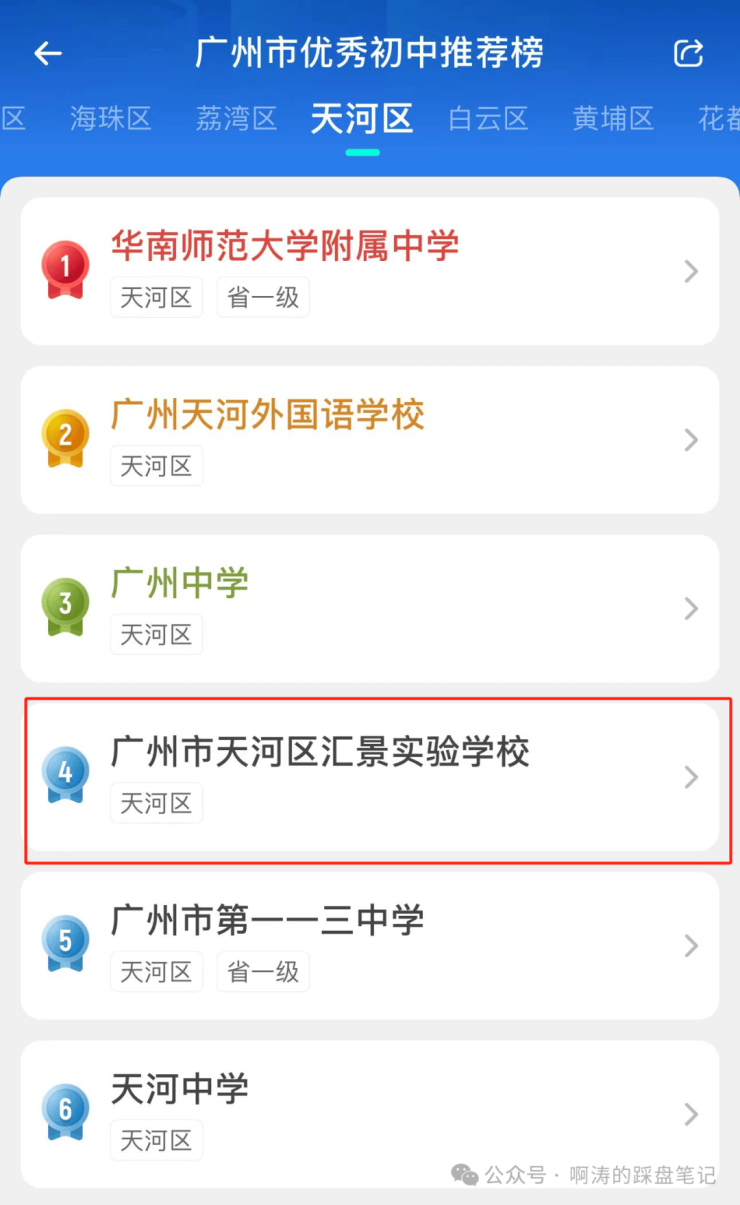 -品牌强:办学成绩天河前排,曾上榜全国初中百强。据盖得数据排名,在天河区优秀初中推荐榜排名前4