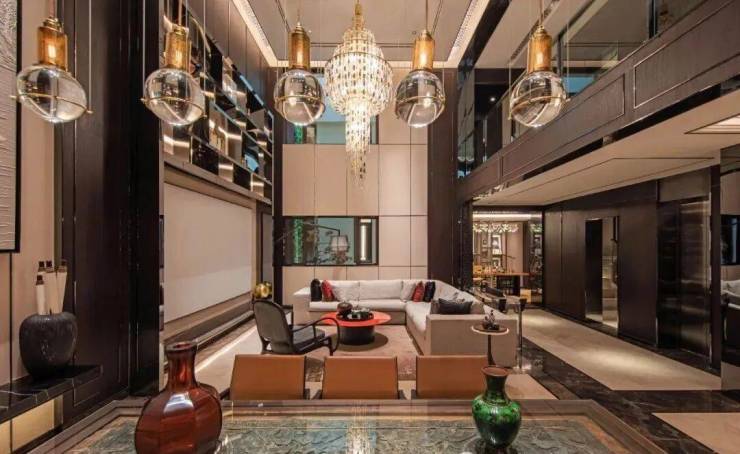项目取法皇家院落规制,通过威仪府门、镇宅石狮、尊荣门匾、名园造景等方式,将传世家族的威仪展现得淋漓尽致。一府宅门,252颗铜制鎏金“浮沤钉”,开阖磅礴气势;镇宅石狮,采用法国金花干挂天然石材,重达上吨,器宇轩昂;德系品牌 SCHUECO 系统门窗,双层中空 LOW-E 玻璃,营造丰盈与外、安静于内的家族生活。