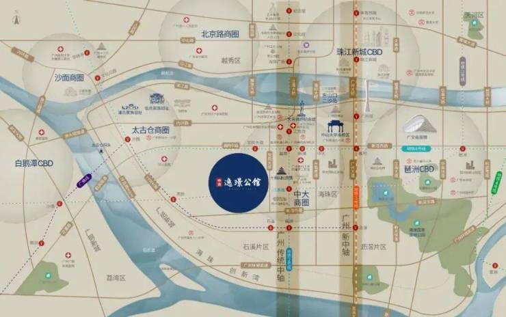 商圈:自带约1.1万㎡逸璟广场,周边约2km内享万科里、燕汇广场、乐峰广场、富力海珠城等,中大商圈、江南西商圈、江泰路商圈环绕。