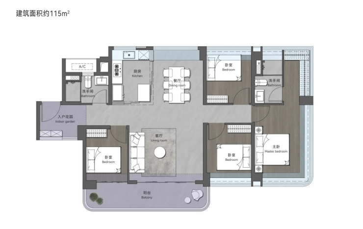 115㎡创意四房两卫,搭配大面积入户花园,归家即享井然有序的从容