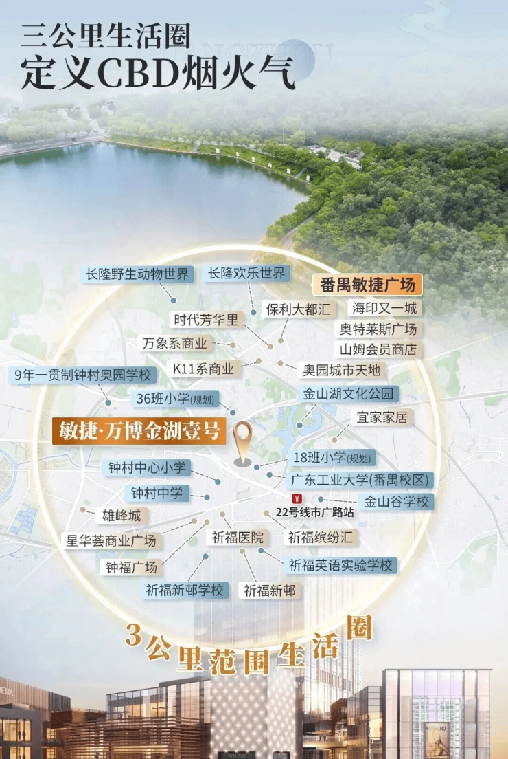 紧邻番禺最大湖泊公园——金山湖文化公园,足足约108.7万㎡原生体量,相当于珠江新城豪宅围绕的珠江公园的近4倍之大,绿意翻涌。