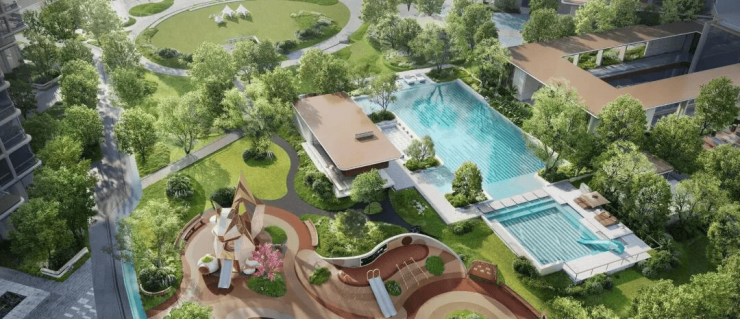 约2700平定制化会所,泳池区、健身区、瑜伽区、咖啡区、亲子乐园等功能,甚至还有私宴区,对标豪宅品质。