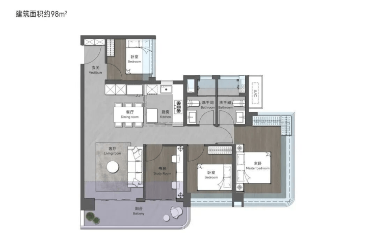 98㎡创意四房两卫,LDKB相融,宽敞餐客空间,承载家人幸福时光