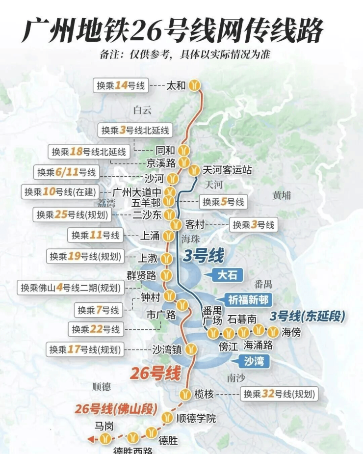26号线呢,相当于3号线的姐妹线,同时换乘站点极多。