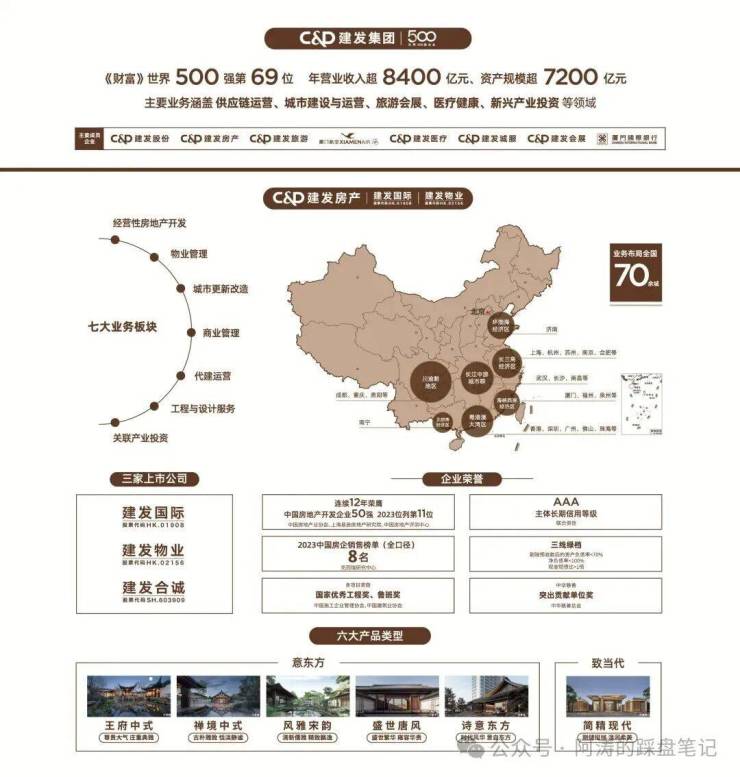 建发房产,《财富》世界500强第69位发集团旗下企业,连续12年获得【中国房地产企业50强】;精耕43年,专注于精研中国传统文化、人居需求、建筑工艺,用“空、象、简、朴”的匠造手法,以精工品质打造新中式奢宅。