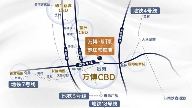 地铁方面:在售的位置步行约550米即达员岗地铁站;1站可到南村万博、4站到琶洲、5站到珠江新城;步行 10 分钟左右即可抵达。搭乘 7 号线,一站便能至南村万博换乘 18 号线,5 站直达珠江新城。通过地铁前往珠江新城,全程虽历经 9 个站,但仅需 39 分钟;去往琶洲,全程也只需 30 分钟。